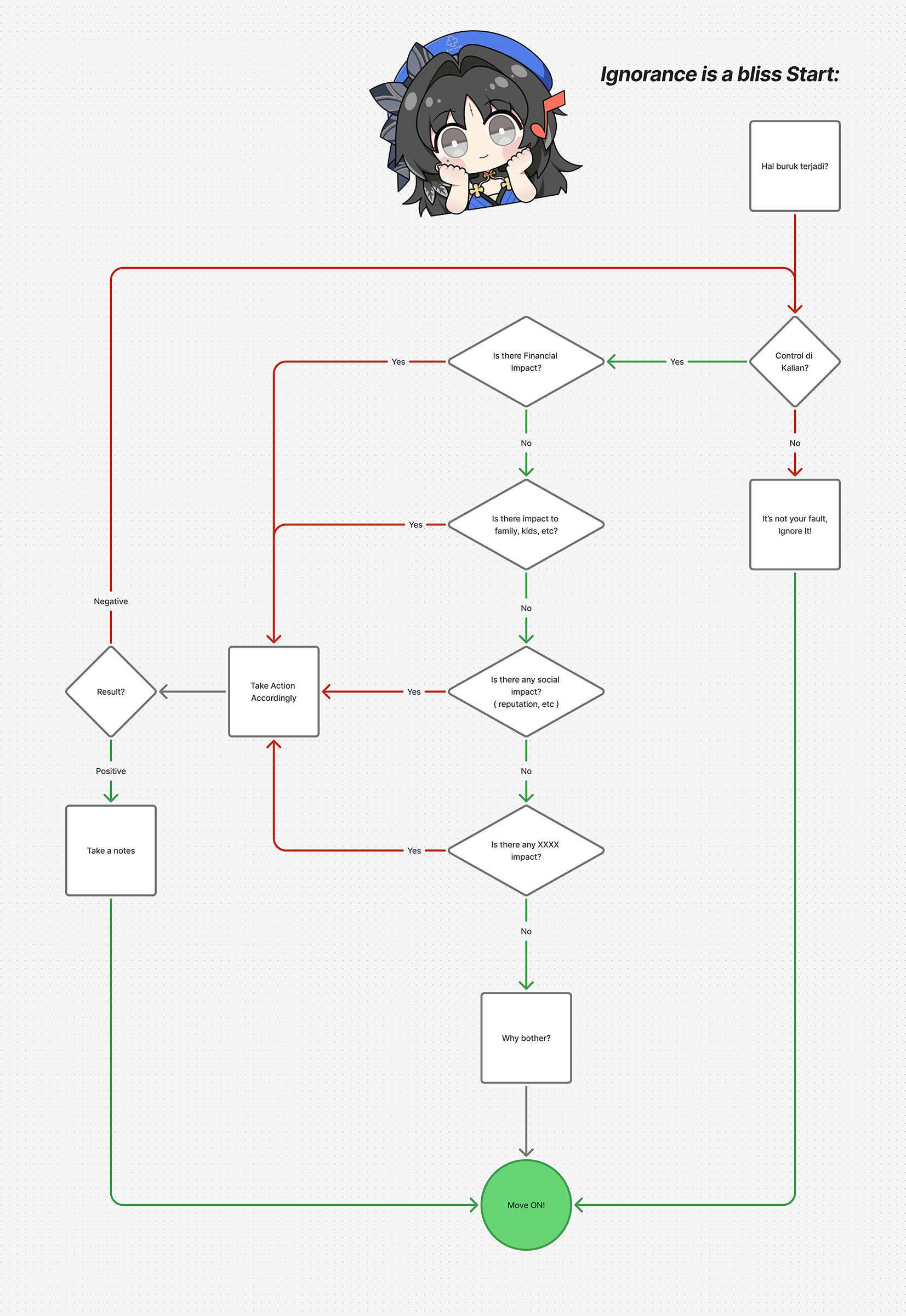 Misalnya bukan sepele gimana? Coba renungkan: Apakah itu membuat kalian rugi secara finansial? memperpendek umur? merugikan keluarga? membuat kalian rusak secara fisik? Tidak? Bagus, MOVE ON!